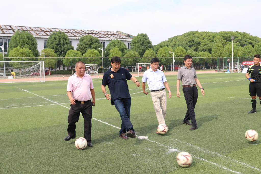 签约仪式后,中国足球联赛预选赛暨湖北省高校教职工足球邀请赛揭幕战在湖边足球场拉开帷幕。迟尚斌、张飙、陈林、王志修为比赛荣誉开球。
