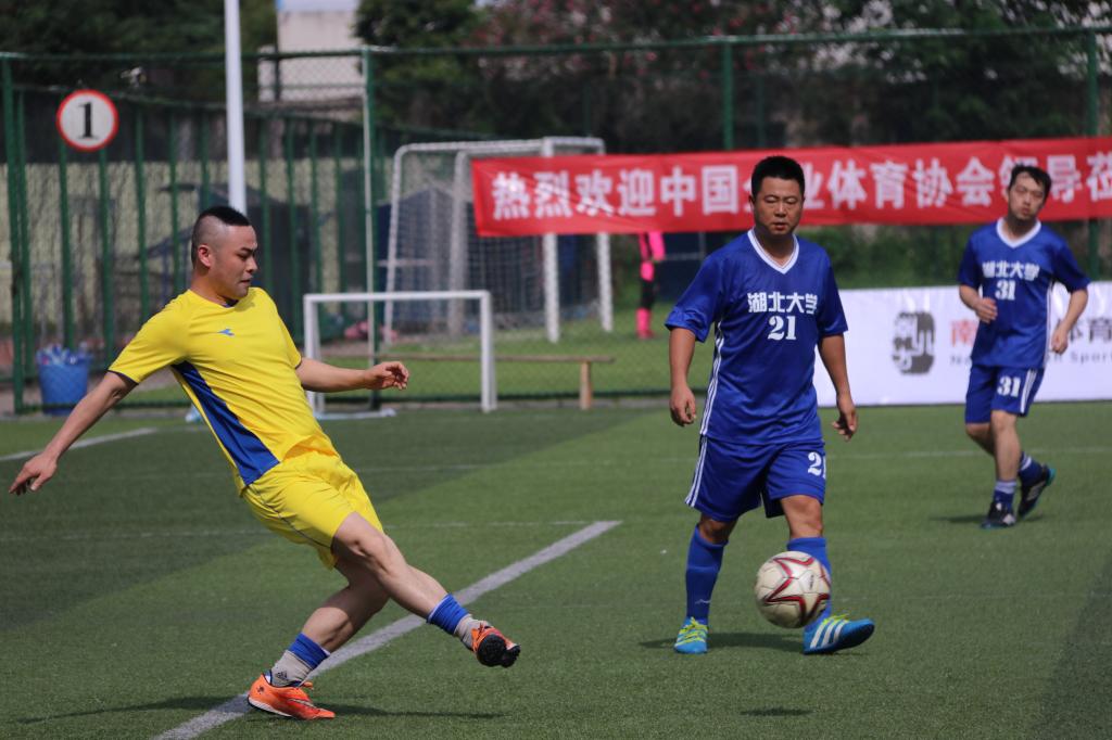 “比赛进行到60分钟时,武汉体育学院7号队员周刚老师禁区内倒三角传球,12号梅博威老师跟进一脚劲射,球应声入网,完成了帽子戏法。67分钟,湖北大学守门员接回传球失误,裁判判罚禁区内间接任意球,武汉体育学院37号袁翔打进……”6月23日,2018“中国足球发展基金会杯”中国足球联赛预选赛暨湖北省高校教职工足球邀请赛在武汉体育学院开赛。本次比赛共有18支球队、540人参加,比赛将进行70余场的较量,持续到11月份结束。