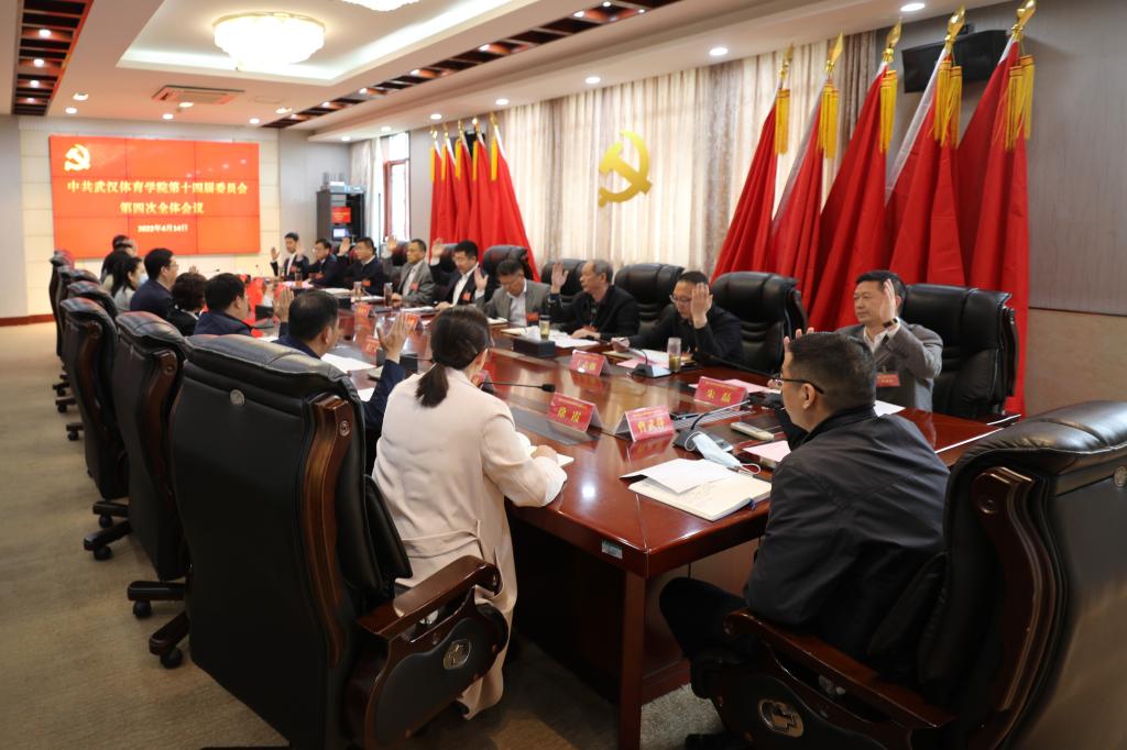 4月14日上午,中共武汉体育学院第十四届委员会第四次全体会议在行政楼315会议室召开。会议应到19人,实到19人,会议审议通过了中共武汉体育学院委员会关于省第十二次党代会代表推荐提名和推荐参加高校系统党代表会议代表的工作报告。全体党委委员出席会议,全体纪委委员列席会议。大会由党委书记陈继平主持。